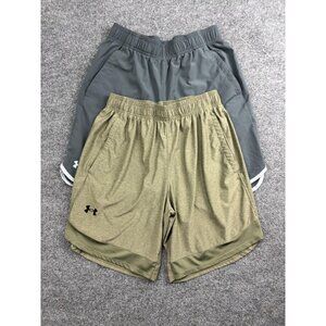 Under Armour Shorts Mens Medium Gray Olive Athletic Training 2 Pack Loose Gym