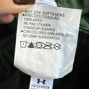 Color: Dark green with white contrast trim and repeating UNDER ARMOUR logo waistband