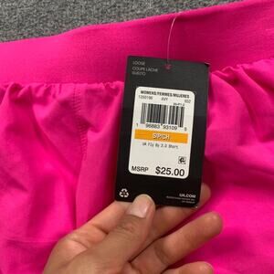 UNDER ARMOUR SHORTS WOMENS SMALL NEON PINK WHITE FLY BY 2.0 LOOSE HEATGEAR LINED