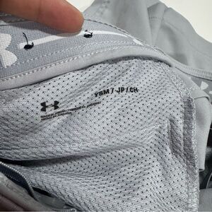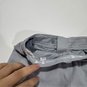 Gently worn boy's size small under armour silver gray flat front athletic golf style shorts. Adjustable waistband, pockets. Please review all photos for any signs of wear-pictured as is. Disclaimer: Any items with any wear/staining has not been treated, and unsure of ability to remove/treat condition. Comes from a smoke free home, bundle with other items to save & minimize shipping cost.