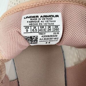 Stylish Under Armour athletic shoes. In a soft pink color, these shoes feature a lace-up closure and a sleek sneaker design.