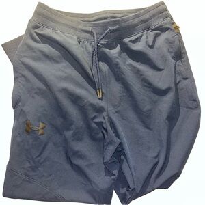 Under Armour men’s size MD Elite Jogger in navy blue. Water-resistant finish, drawstring waistband, and zipper hand pockets as well as back phone pocket. Excellent condition, like new.