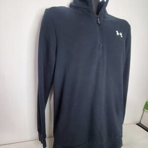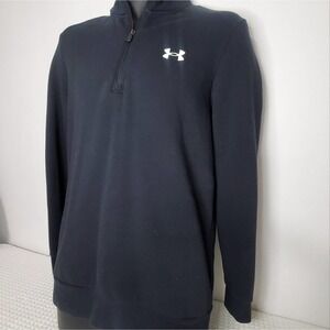 Under Armour Small Pull Over Men 3/4 Zipper Loose Sweater, fleece interior, super soft and comfy. A true black color' hasn't washed off, stretchy material. You can wear this sweater with a pair of joggers, jeans and canvas shoes for a casual outfit. Used but in like new condition.