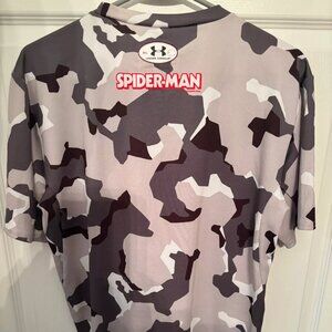 Under Armour Spider Man Camouflage Compression Gray White Red Shirt - Size XL