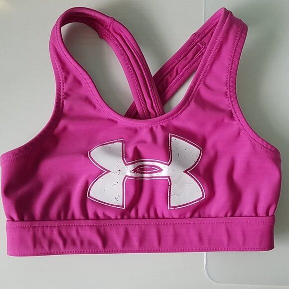 Super cute AND comfortable, Under Armour sports bra. In excellent condition!! Worn just a few times. This was given to me as a gift and is a bit too small for me, otherwise I'd love to keep it!