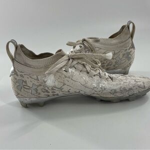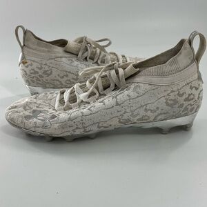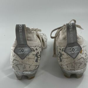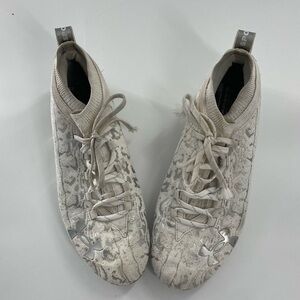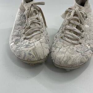 Under Armour Spotlight Lux 2.0 White and Silver Grey Baseball Soft Cleats Shoes. In pre-loved condition. These do show some signs of wear but are still in great condition. Soft spike baseball athletic shoes cleats.