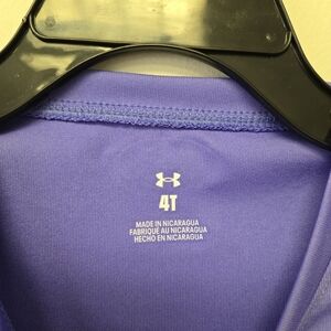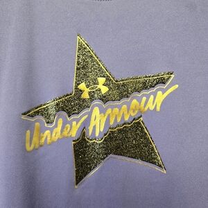 This stylish Under Armour kids shirt features a vibrant purple color with a striking gold and black star design.