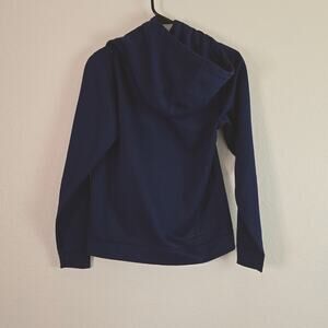 Stay warm and comfortable in this Under Armour Storm Coldgear hoodie! This stylish blue and gray hoodie is perfect for workouts, running errands, or lounging at home. It is in gently worn, good condition, ready for a new owner!