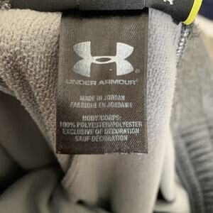 The Under Armour Storm Pants for women in size small are a semi-fitted, open-bottom design in a stylish gray color. Made of polyester fleece fabric, these relaxed-fit pants feature a pull-on closure and wide-leg style for comfort and ease of movement. Ideal for activewear or casual wear, the pants have elastic waistband, stretch material, zip pocket, and zippered hems for added convenience. Perfect for gym training or running, these versatile pants are machine washable and designed by the reputable brand Under Armour.
