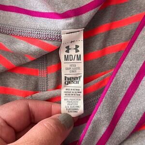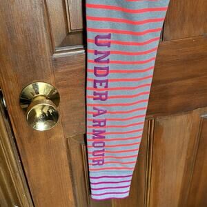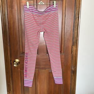 Very soft leggings. Multicolor striped and has "Under Armour" on the back of the left leg. In excellent condition, no flaws or damage.