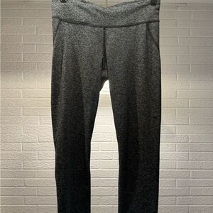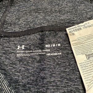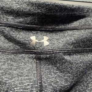 Stylish gray and white striped leggings by Under Armour. Ideal for active wear.