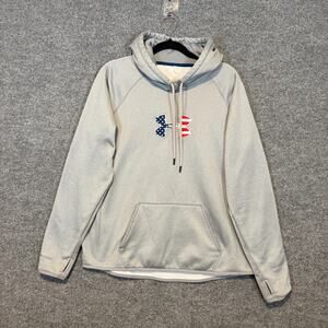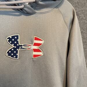Under Armour Sweater Mens XL Gray Pullover USA Flag Logo Storm Hoodie Sweatshirt