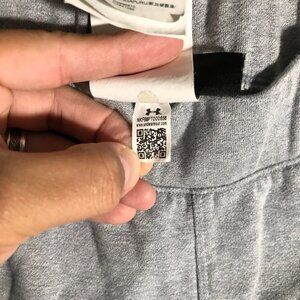 This product is a pair of women's size large Under Armour sweatpants in a loose fit, designed for activewear. The pants are a stylish and comfortable option for workouts or casual wear, featuring a classic grey color that is versatile and easy to mix and match with other activewear pieces. Made in Singapore, these sweatpants combine quality craftsmanship with a modern and functional design, making them a great addition to any active woman's wardrobe.