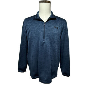 Under Armour Sweatshirt Mens Large Blue Fleece Lined 1/4 Zip Loose Fit Pullover