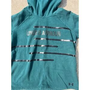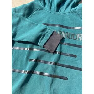 Under Armour Sweatshirt Women Sz Small Teal Graphic Mock Neck Hooded Long Sleeve