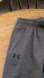 Under Armour youth size large athletic pants. Pants feature 100% gray poly smooth tricot knit fabric; brushed interior; sweat wicking; fast drying; side on-seam open hand pockets; fitted; tapered leg; open hem; encased elastic waistband with exterior adjustable drawcord; black UA graphic on bottom rear right leg; and signature black UA logo decal below right front pocket. Perfect for active or casual wear! Small “scuff” on right front leg. Very good preloved condition. Refer to pictures for measurements.