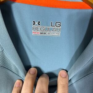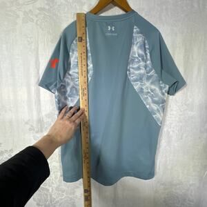 Under Armour T Shirt Large Blue Heat Gear Short Sleeve Raglan Combine Training