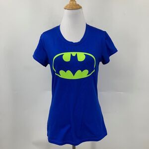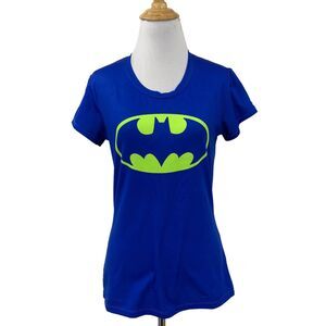 UNDER ARMOUR T SHIRT WOMEN S SMALL SURF BLUE FITTED BATMAN LOGO HEATGEAR WICKING