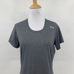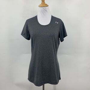 Under Armour T Shirt Womens M Medium Fitted Grey Stretchy Heatgear Workout Tee
