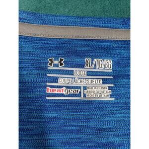 Stay cool and perform your best in this Under Armour HeatGear men’s XL blue sleeveless tank top. Designed with lightweight, moisture-wicking fabric and a loose fit for maximum comfort during workouts or casual wear. Features the UA logo on the chest and a soft heathered finish.