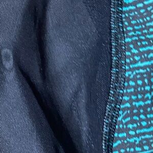 Under Armour Stylish teal patterned leggings. Black mesh pattern on legs.Perfect for workouts or casual wear. Size Large.