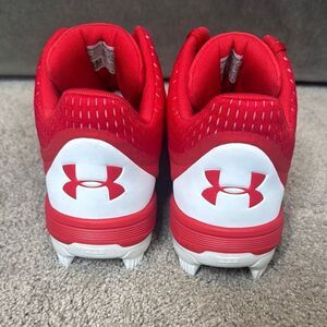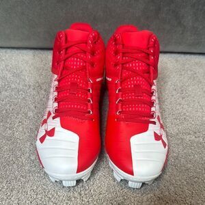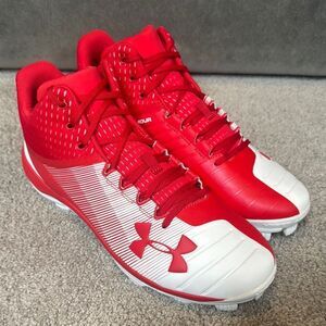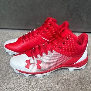 Under Armour Team Yard Mid TPU Red White Baseball Cleats Size 11.5 3021513-600