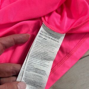 Under Armour women’s hot pink V-neck short sleeve shirt with metallic silver under Armour logos. Heat gear loose style. See photos for pit to pit measurement. Size XS. Sure is an excellent condition with no cracking or fading on the logos.
