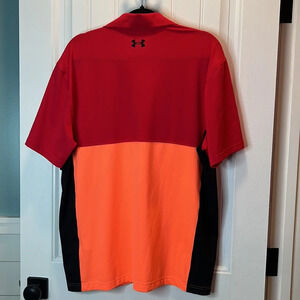 Under Armour Raspberry, Orange and Black Color Block Polo Shirt. Size XL.