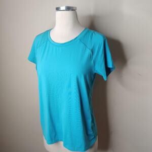 Under Armour short sleeve split back top. Size S. Nylon spandex. (11434)