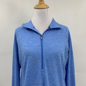 UNDER ARMOUR TOP WOMEN M MEDIUM BLUE RUN HALF ZIP LONG SLEEVE THUMBHOLE SHIRT