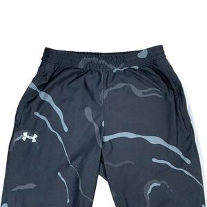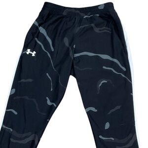 Under Armour Track Pants Camouflage Print Black gray with White Trim Size Medium style 1352030