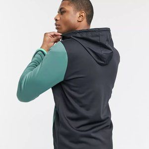 UA men's 1/2 zip fleece with hood - like new condition - green and black with electric green trim