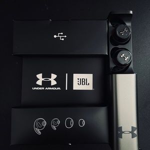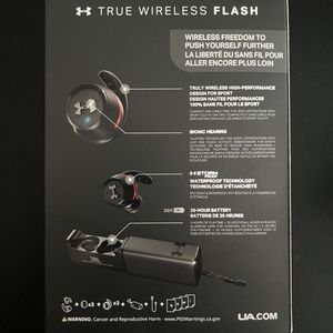 Under Armour OSFA wireless headphones. Opened once but never worn. All accessories that come with the set are included and never opened. High performance, bionic hearing, waterproof technology, and 24-Hour battery. Description of headphones are located in the back of the packaging.