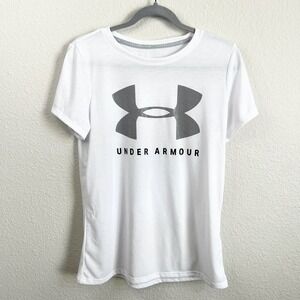 Under Armour T-shirt Womens M White Short Sleeve Logo Loose Heatgear Athleisure