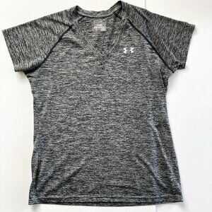 Under Armour womens sz medium heather gray Twisted Tech v-neck Heatgear short sleeve shirt. Semi-fitted. 1242207