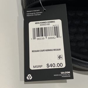 This is a new pair of Men's Under Armour UA Ignite 7 Black Slide Sandals in a Size 17. These slides are in new condition with no wear or damage. The sandals have cushioned fabric-covered insoles and adjustable hook & loop fastened padded straps. I encourage you to enlarge the photos to view small details. If you have any questions about these sandals, please ask!