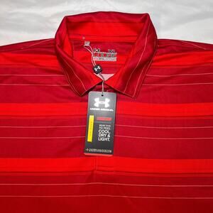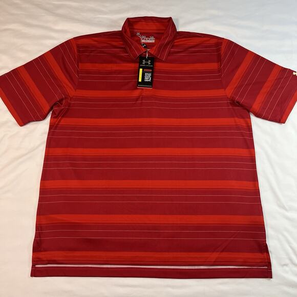 Under Armour UA Polo Men's Size XL Red Striped Shirt Heat Gear Loose Golf NWT.