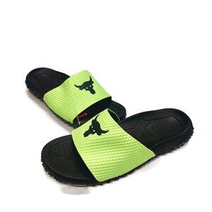 Under Armour UA Project Rock Slides Mens Size 8 SL 2.0 Brahma Bull Green Sandals
