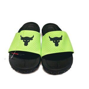 Under Armour Mens Size 8 UA Project Rock Slides SL 2.0 Brahma Bull Green Sandals