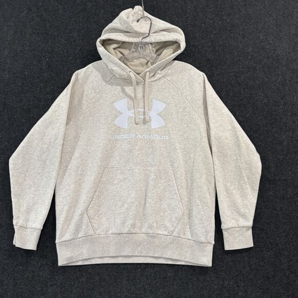 Under Armour UA Rival Hoodie Womens Medium Cream Fleece Kangaroo Pocket Pullover