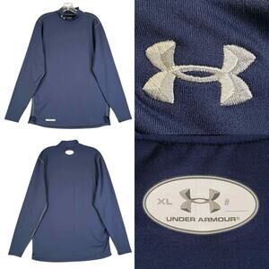 Under Armour UA Shirt LS Mens Size XL Navy Blue Mock Neck Coldgear Fitted
