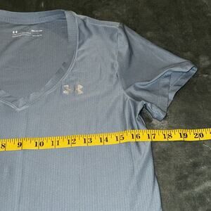Under Armour UA Tech T-Shirt Womens Small Gray Deep V-Neck Short Sleeve Heatgear.