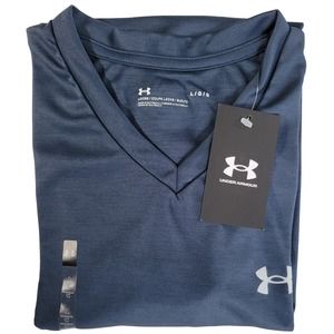 Under Armour UA Velocity Men's T-Shirt Performance Gym Run V-Neck Tee Large Blue