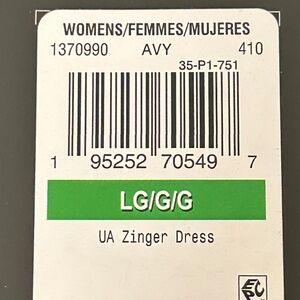 Brand New With Tags Under Armour Golf Dress, Size Large. In colorway Navy Neptune. Navy with green accents. Dress has pockets. Athletic, moisture wicking material. Sleevless. Fitted. Perfect for golf or other athletic activities.