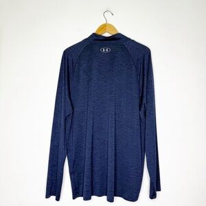 Stay active and comfortable with this high-performance Under Armour long sleeve quarter-zip pullover. Designed in a rich navy heather color, this top features the signature UA logo on the chest and is perfect for workouts, running, or casual everyday wear.