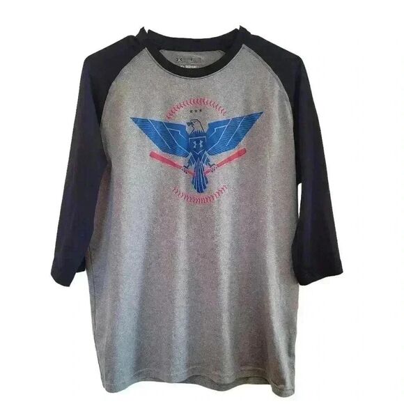 Under Armour Unisex Youth Baseball/Softball 3/4 Raglan Sleeve T-Shirt EUC sz M Pit to pit 20 length 26 Sleeve Length 16