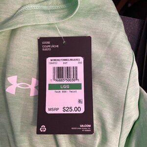 Under Armour UA Tech Twist Tee. New with Tags. Short-Sleeve. Loose Fit. V-neck. Bright lime green color with white heathering. Details on this style of shirt can be found here at the UA website: