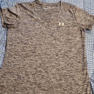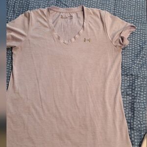Set of three Under Armour V-neck T-shirts in peach, light pink, and gray.