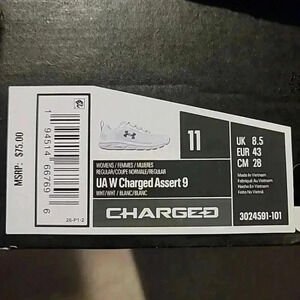 Under Armour W Charged Assert 9 Shoes White Women Size 11 3024591-101 NIB UA