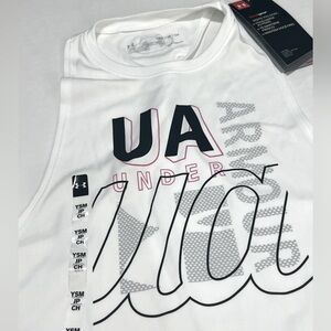 Sleek white tank top by Under Armour. Ideal for sports and casual outings.